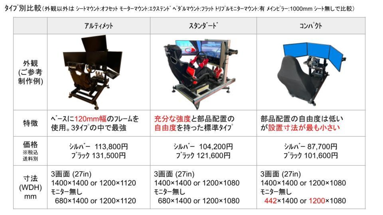 オプションの「メインピラー」にて3画面 or 4画面を選択した場合でも、3画面用モニターアームは付属しません。(モニターアーム取り付け用部品のみ付属します。)