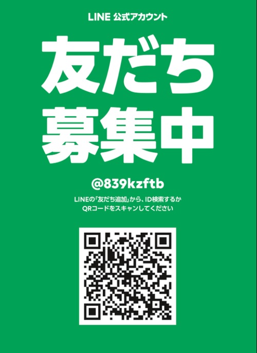 公式LINE:https://page.line.me/839kzftb?openQrModal=true
